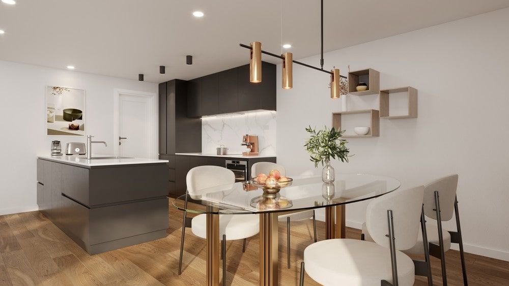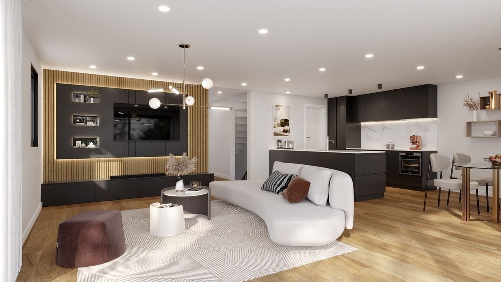 Un hall d'entrée avec son vestiaire, un WC, un séjour/salle à manger, une cuisine et une chambre en option.